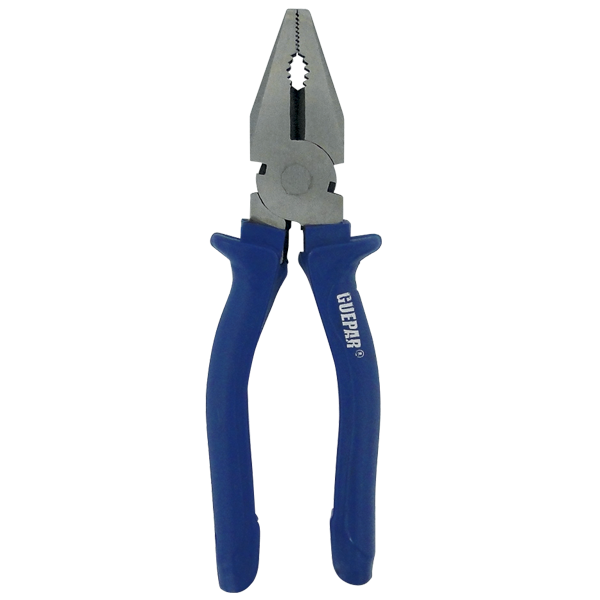 Alicate universal fabricado em aço carbono especial, articulação suave para facilitar o uso.